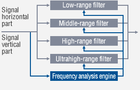一个二维分析每个场景的视频信号的频率和提取信息的分布超高、高、中、低频图像组件,松下独特的图像校正电路优化每个图像部分基于提取的信息。