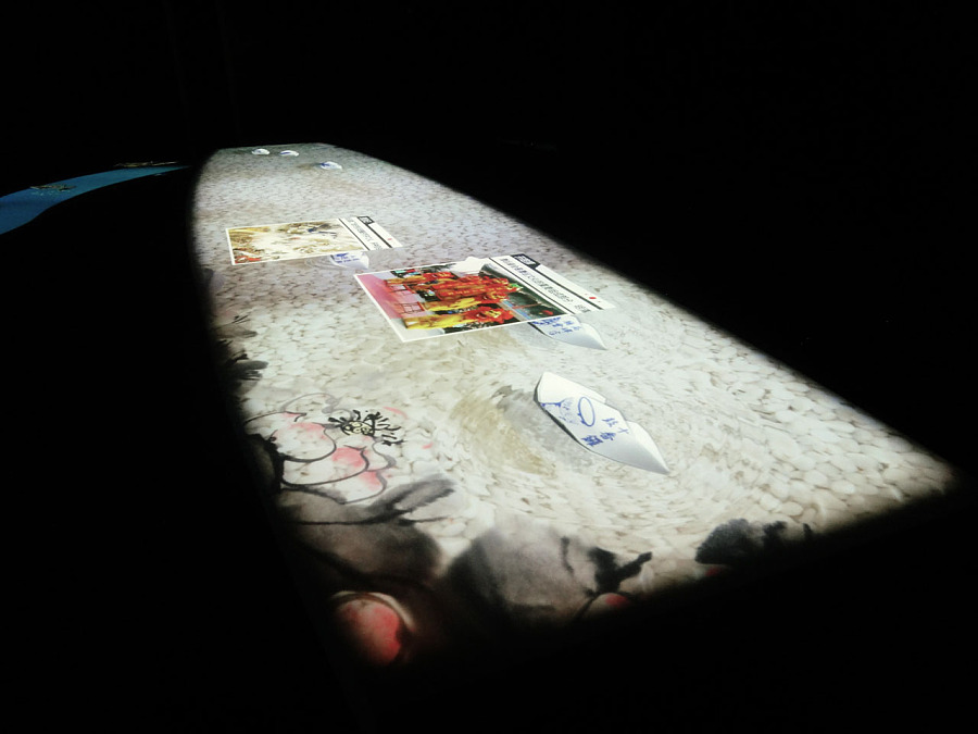 多点触控桌就是一个标准化的桌面互动,开放式的平台允许我们使用它来实现多种功能。但我们有时需要不同尺寸的桌面互动,来满足不同展览展示场合的需求。因此我们调用多通道边缘融合软件,来扩大桌面互动的尺寸,可以使之成为巨型的桌面融合互动。