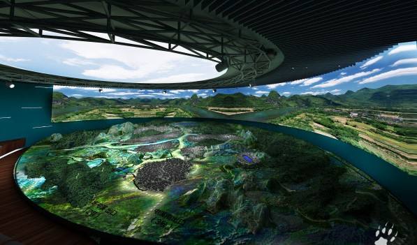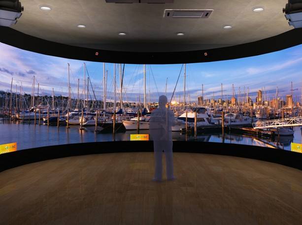 360度环幕投影展厅可真实的模拟城市、街道、花园等自然环境,观众有身临其境的真实的体验 适合大型的环境仿真,视听触觉效果好。现在应用360度环幕展厅的场所越来越多,例如展览馆、博物馆、美术馆、展示电影院、房地产销售大厅、政府规划大厅、企业文化展厅等。360度环幕、环幕播放系统、边缘融合技术和曲面校正系统、系统播放集成控制系统、音箱系统以及相关的360度定做影片组成。相对于弧幕展厅,环幕馆的立体感、动感和沉浸感更强,是公认的大型数字展厅和数字展馆的重要体验推广方式。