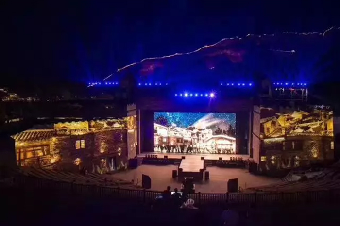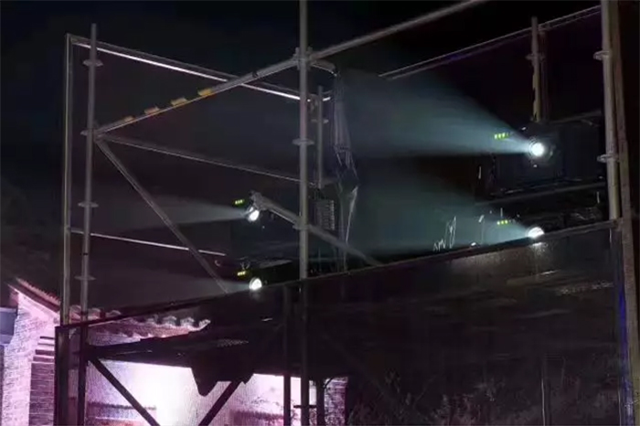 本次发布会在全户外的环境中进行,夜幕降临,华灯初上,6台松下工程投影机PT-SRZ31KC也加入到这场夜晚的狂欢中,以舞台两侧的城楼为背景投幕,打造出一套高端户外投影系统解决方案。整场发布会在舞台灯光与投影影像的装扮下熠熠生辉,远方的司马台长城犹如一条金色的巨龙腾空飞起,舞台两侧巨大的城楼不时切换着清晰而逼真投影画面,时而展现小桥流水的古镇群落,时而将人带入神秘海底世界,每个画面都震撼无比。