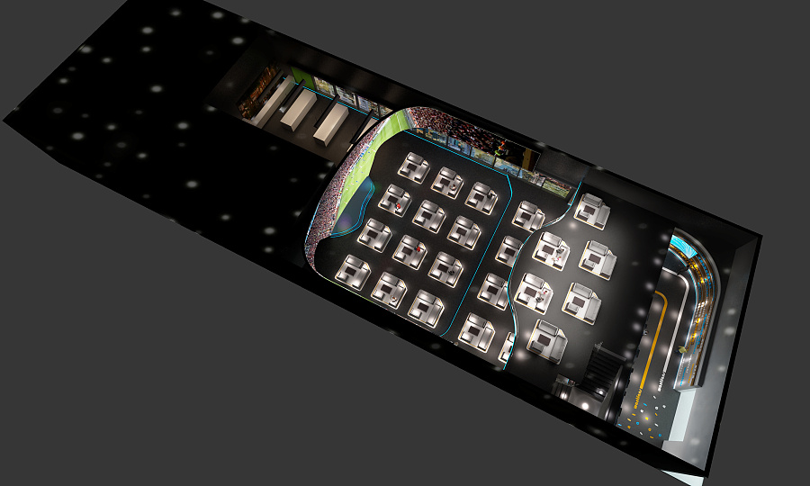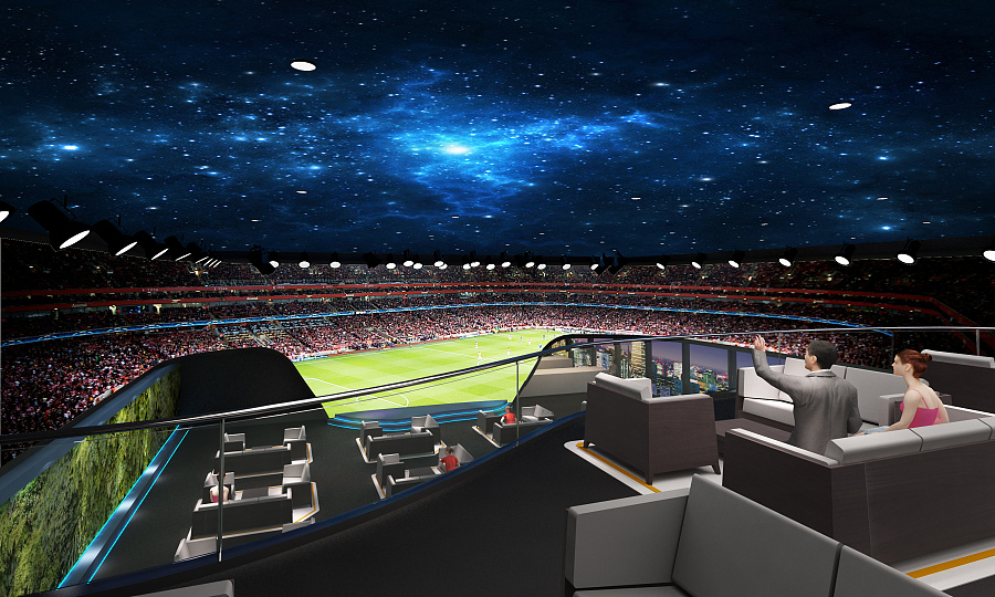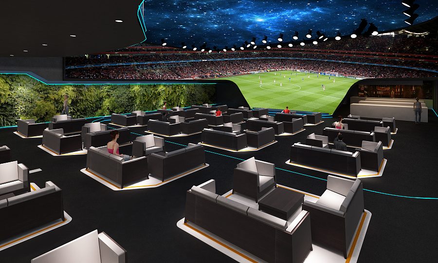 作为一个大型科技餐厅,舞台表演和比赛观看是不可缺少的。舞台表演一般都是举行一些大型活动时而设计的,专门设计为一些生日派对、行业活动、节日活动等。科技餐厅最独特的地方莫过于此,在舞台表演的另一边,我们可以尽情的享受一场足球盛宴,通过投影融合而打造出来的大画面,让我们身临其境,仿佛我们也在足球场中。