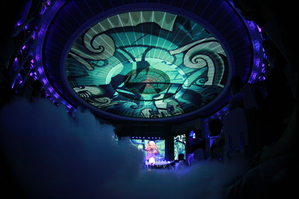 为了实现这个穹顶投影,计划安装12台20000 - lm松下工程投影仪。 关键技术因素,需要克服:20000 lm的高亮度和高分辨率以及一个紧凑的身体避免减少座位容量噪音低,不会打扰听众。
